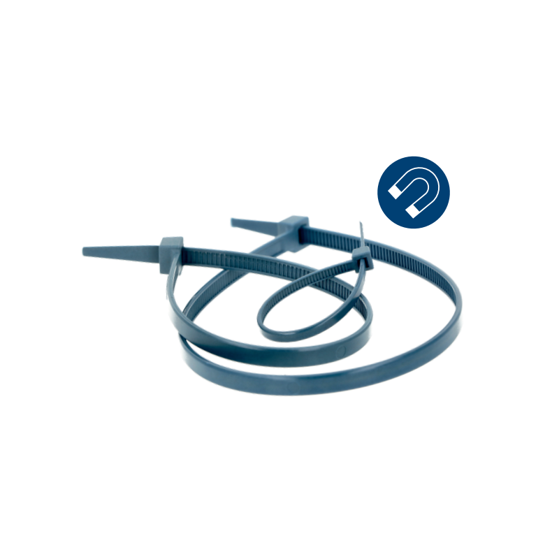 DET kabelių dirželiai aptinkami metalo detektoriaus, skirti naudoti ten, kur reikia pašalinti užteršimo riziką gamybos proceso metu, pvz., su maisto ar farmacijos produktais, gamybos linijų komponentais ir kt. Aptinkami kabelių dirželiai pagaminti iš poliamido su metalo drožlių (metalo oksidų) priedu, kuris suteikia jiems šviesiai mėlyną spalvą. Maisto ir farmacijos pramonėje jie taip pat naudojami maišeliams ir konteineriams sandarinti, tačiau tik tais atvejais, kai nėra tiesioginio kontakto su pakuotės turiniu. Šie dirželiai nėra skirti tiesioginiam kontaktui su maistu ar vaistais.