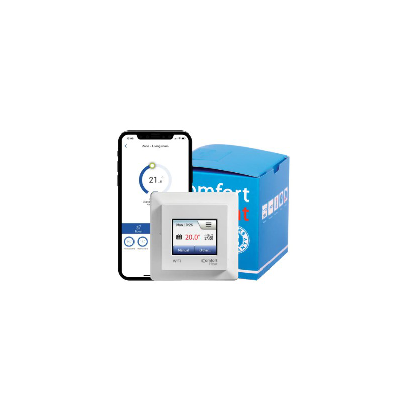 Patogus vartotojui Comfort WiFi termostatas suteikia jums galimybę valdyti šildymą išmaniuoju telefonu, naudojant paprastą ir intuityvią programėlę iš bet kurios pasaulio vietos. Prisijungimas prie programėlės trunka tik kelias sekundes. Naudodami Comfort WiFi termostato programėlę galite valdyti kombinuotas termostato šildymo zonas. Programėlė turi daugialypę prieigą prie vartotojo ir gali valdyti kelis gyvenamuosius namus ar butus. Comfort WiFi termostatas lengvai suderinamas su visų gamintojų jutikliais. Išsamūs energijos suvartojimo duomenys leidžia stebėti energijos suvartojimą. Integruotas vedlys nukelia jus į kiekvieną žingsnį, užtikrindamas paprastą termostato programavimą ir naudojimą.